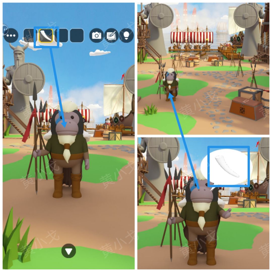 1.点击猴子,拿【号角】给它