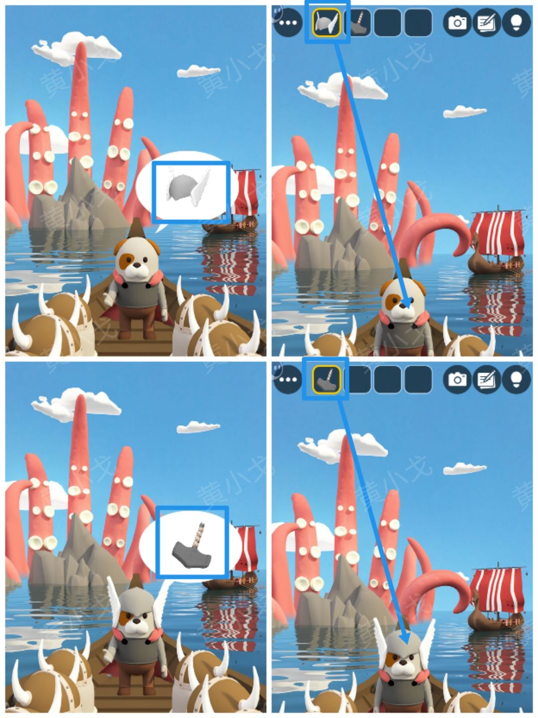 23.拿【头盔】和【锤子】给小狗