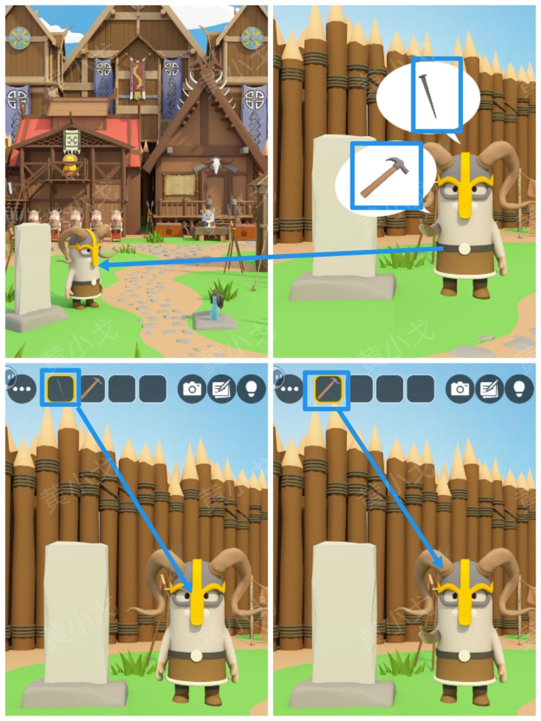 12.点击石碑旁边的动物,拿【钉子】和【锤子】给它