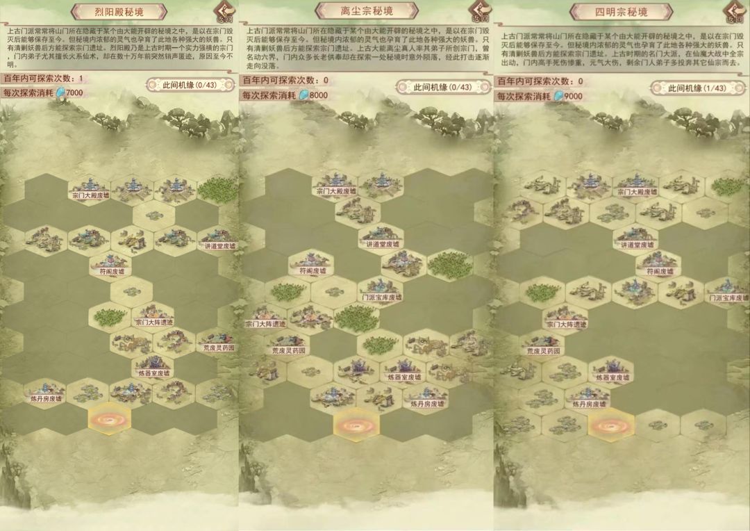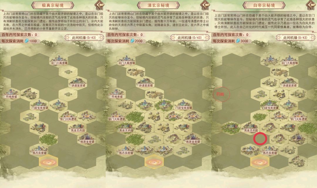推荐探索:讲道堂>灵药园>宗门大阵=宗门大殿