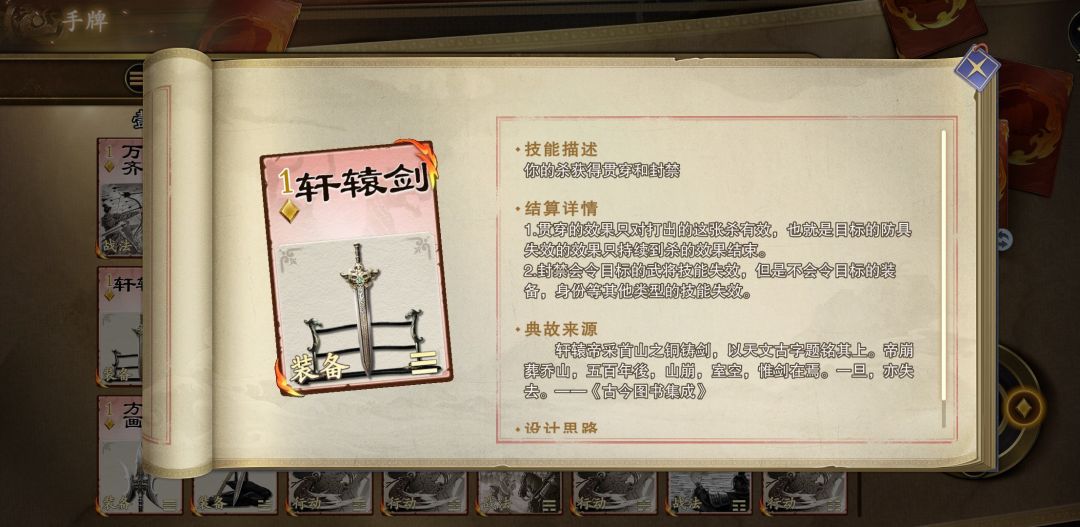 有人会说:孙策技能是在回合开始时判定,然后摸牌阶段强制摸牌。我只能说:孙策的细则明确写了摸牌阶段前判定,而且轩辕剑有封禁技能的效果。