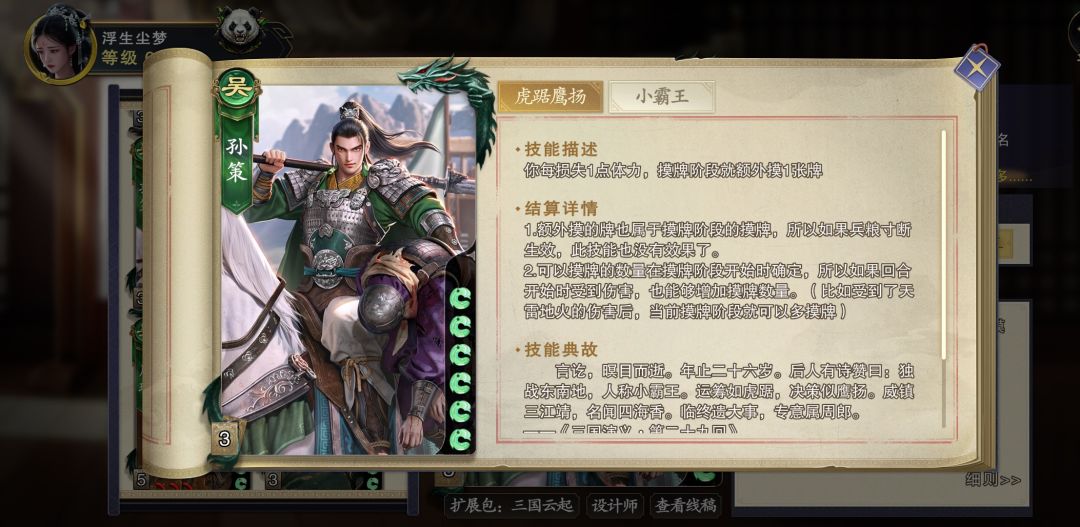 如图所见:孙策技能确实没有触发,但是就是摸牌了,我只能说明程序员真的是天才。要不是亲眼所见,我真不会知道这都有Bug。