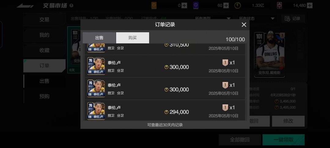 经历这次S2历史球员后,已经发现了一个赚合同费最划算的方式,就还是预购券。虽然大热门的历史卡很难预购抢到,但是一部分相对冷门的历史卡还是很好预购到的,比如我自己就是预购的泰伦卢,30w左右预购了30张,今天66w全部抛了