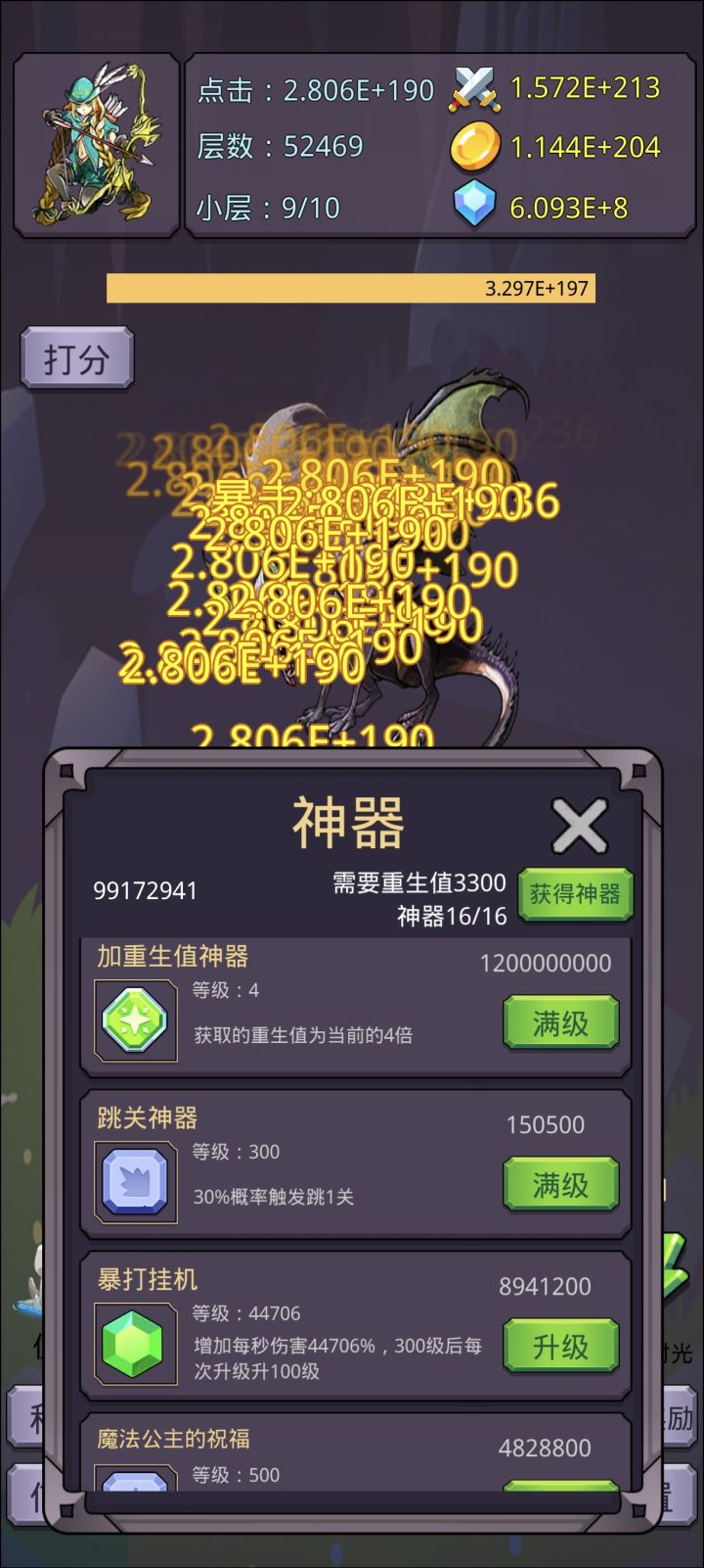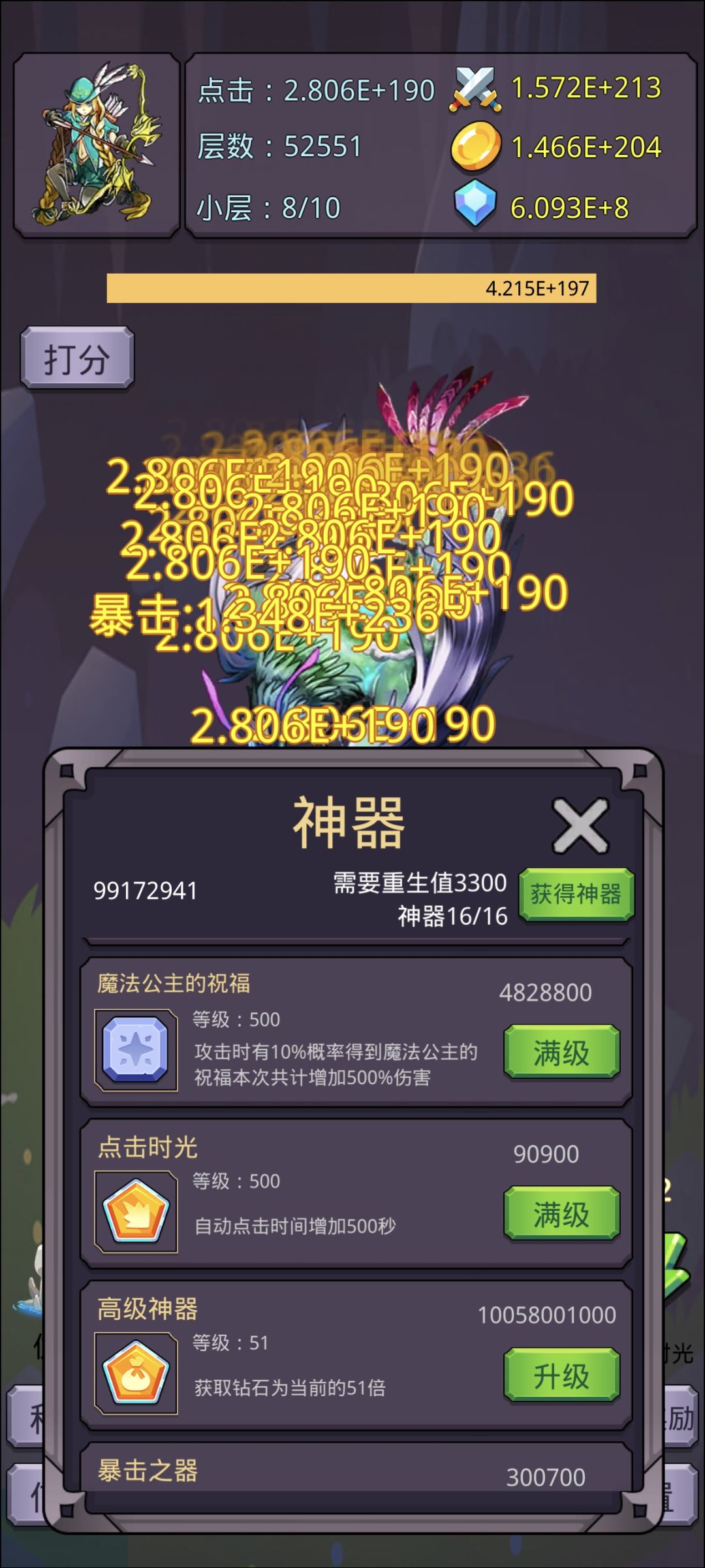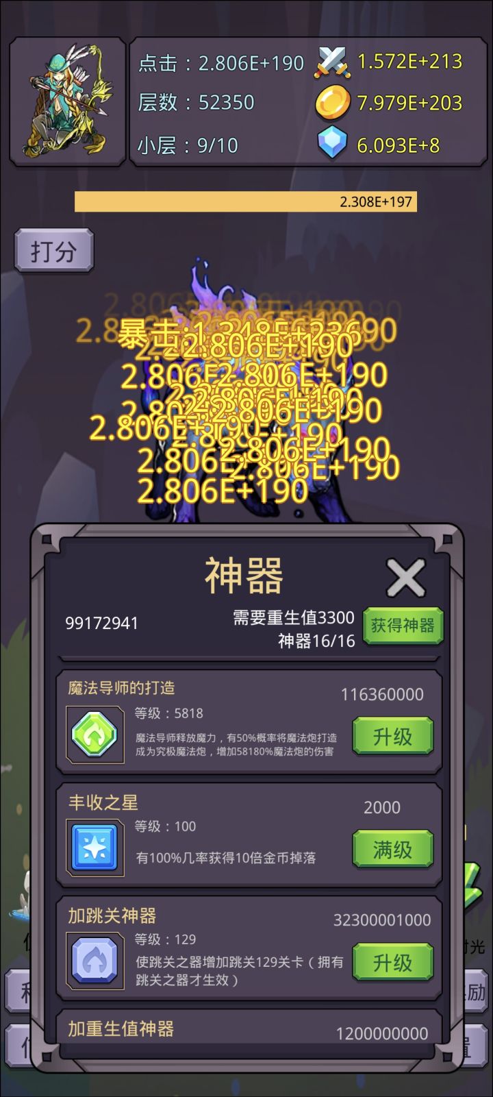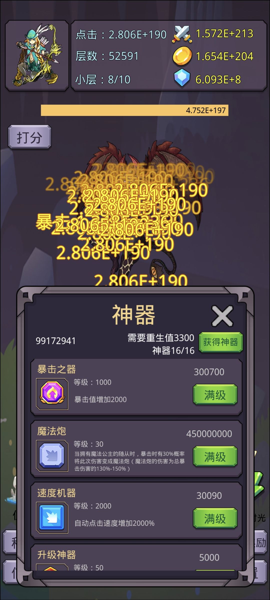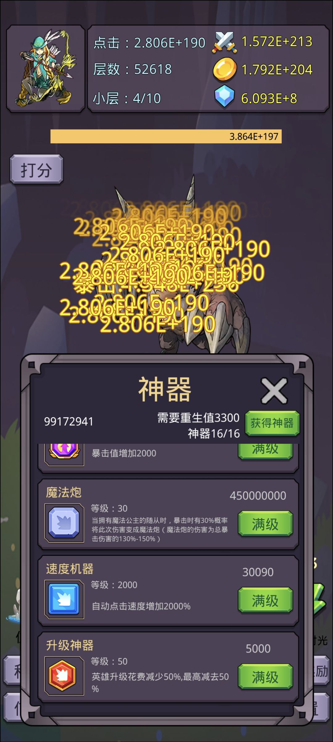 22.破界者之锤:成倍增加点击神器的伤害,满级150级