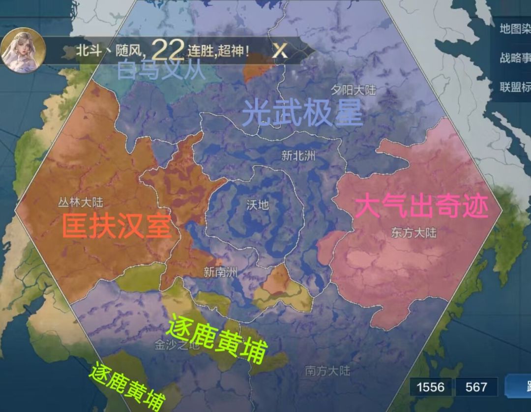 光武极星与匡扶汉室正在交换成员分享天神与帝王奖励,白马义从成功从匡扶汉室手中夺下白城得以立国,逐鹿黄埔与光武极星的战斗依旧,不过由于交换成员事件导致战斗烈度明显降低。