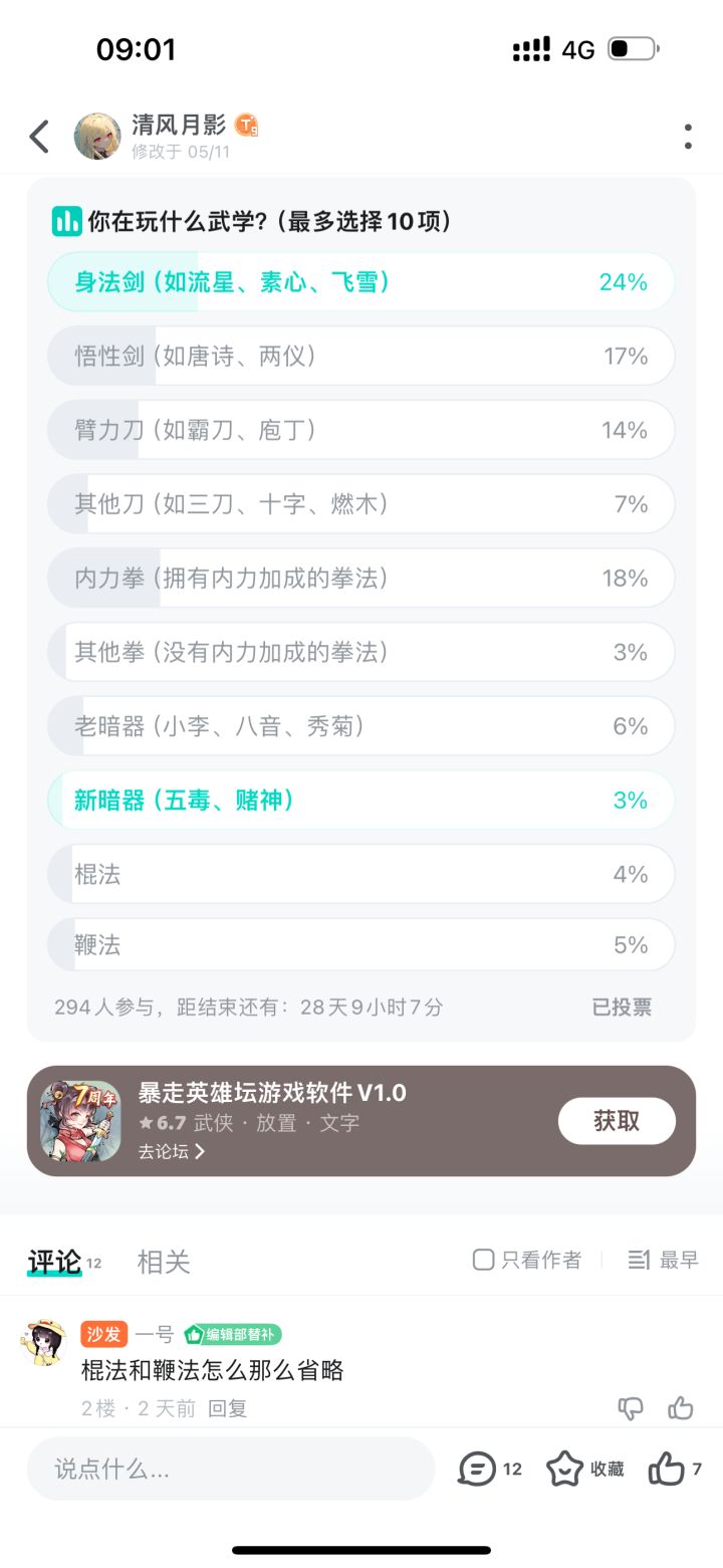 暴走英雄坛游戏软件v1.0玩家武学汇总