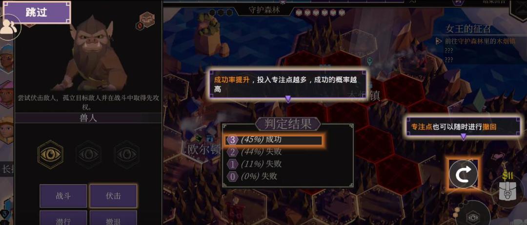 游戏中勇士们需要执行不同的动作,例如潜行,伏击等,均会有着不同的“判定结果”与“判定几率”。
