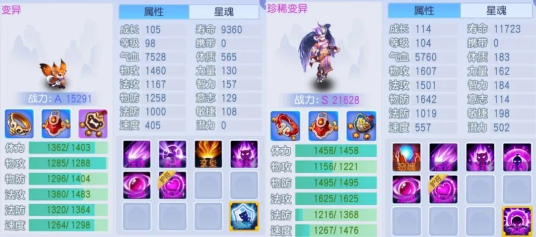 测试用宠火灵狐属性保持不变,与第二场唯一的区别是新增了高级法盾技能。这个数据确实令人惊讶,部分攻击伤害甚至跌至三位数。但仔细分析后,这个结果是合理的。高级强横和高级法盾相互抵消18%的效果,再加上高级法盾本身的15%减伤,伤害降低是可以预期的。