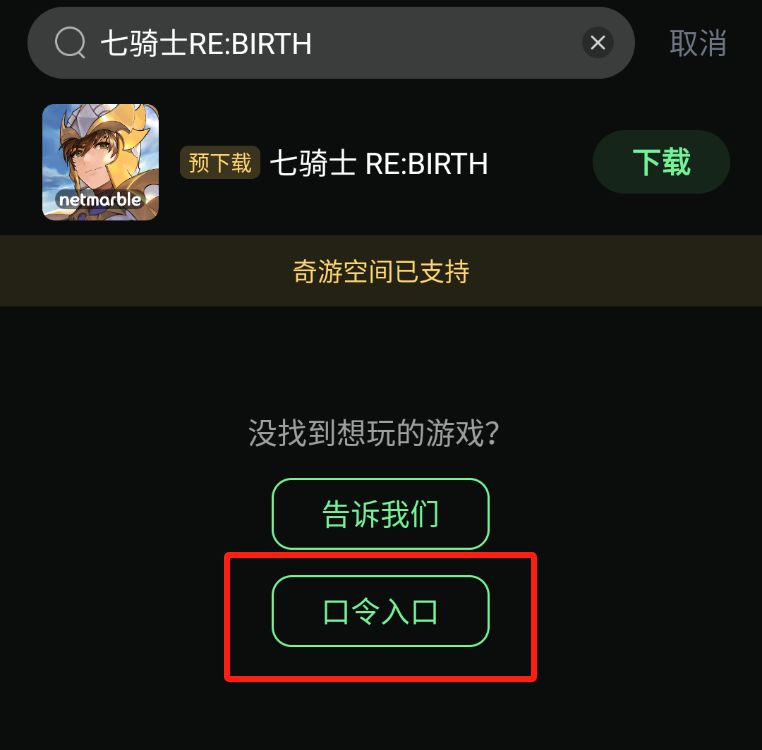 第三步:在奇游内搜索【RE:BIRTH】即可下载游戏 部分玩家可能会出现无法正常安装apks或者xapk格式安装包的情况,推荐大家使用【奇游空间】进行安装游戏