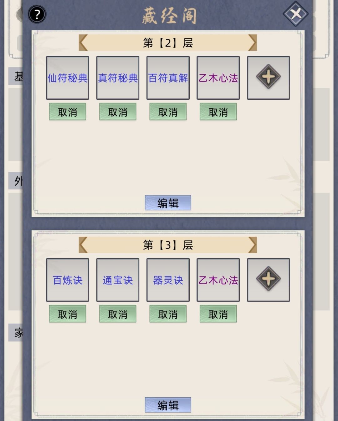筑基一~化神 三阶全技能功法二本+四阶一本技能功法+四阶乙木+主修一本,分三层 丹 器 符。