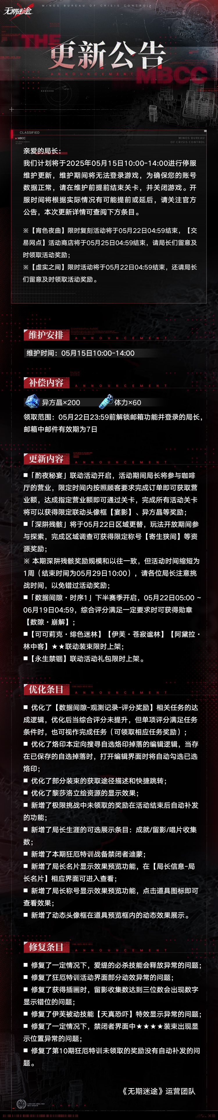 【公告】丨05月15日停服维护更新公告