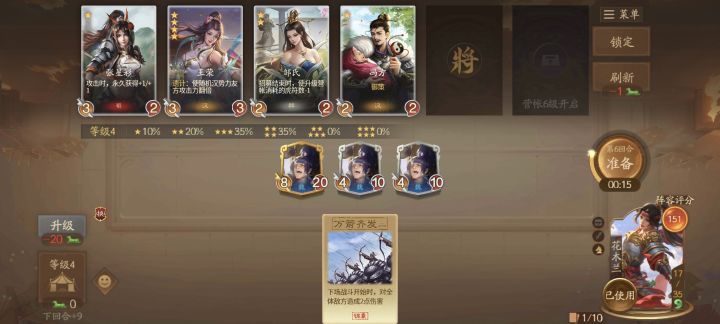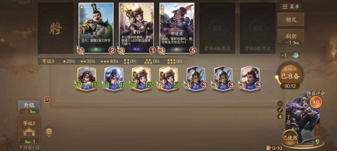 新赛季这破棋的关键子说不给就真不给,几十块甚至几个兵贵神速都刷不出。图1很胡的西凉孔融玩到结束才1金1白华雄,且几十块刷不出一个徐荣来。图2花木兰对来对去永远只有曹昂能用,且刷不出其他任何魏国核心(现在已经完全不玩花木兰了,前面根本刷不出蜀吴对子,至少5轮才能对出4,黄花菜都凉了)。图3蒙恬7轮刷不出第二个邓艾。图4丁原9轮没有对出金张衡。
