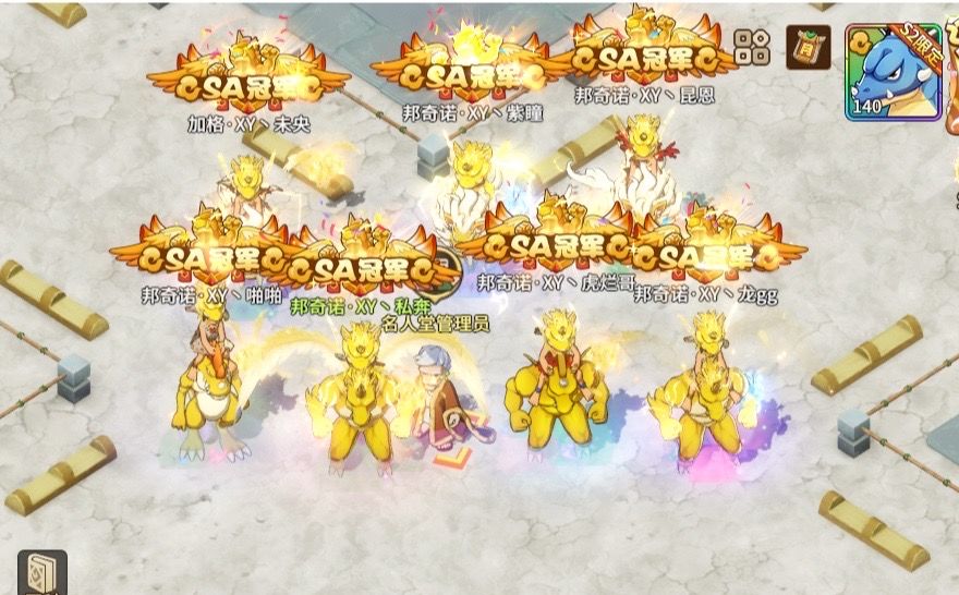 8进4对阵中我们遇到了微氪玩家,他们出阵了五雷龙,是我们相对较少遇到的5精灵的阵容,所以一开始打的时候整个队伍是处于惊讶状态,只能边打边拆解,找办法破掉这套阵容,最后也是险胜拿下了这场比赛。这场比赛虽然打得很艰辛,但也让我们享受到游戏中挑战的乐趣。