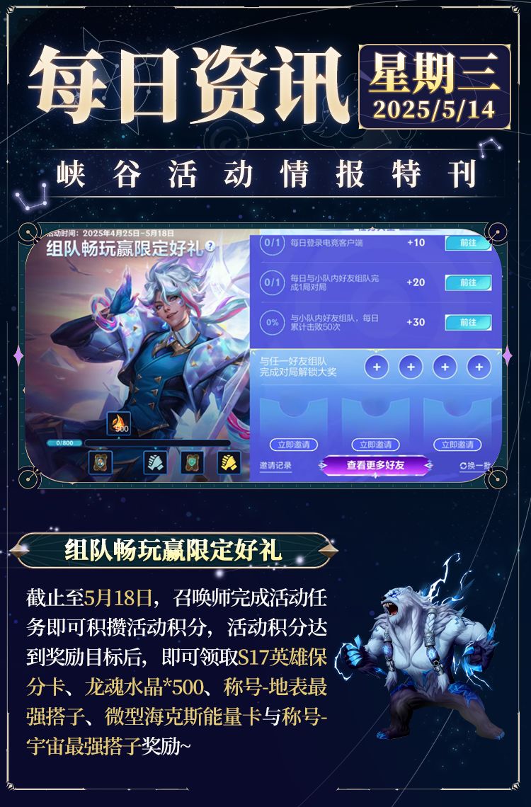 奖励:S17英雄保分卡,龙魂水晶*500,微型海克斯能量卡等好礼