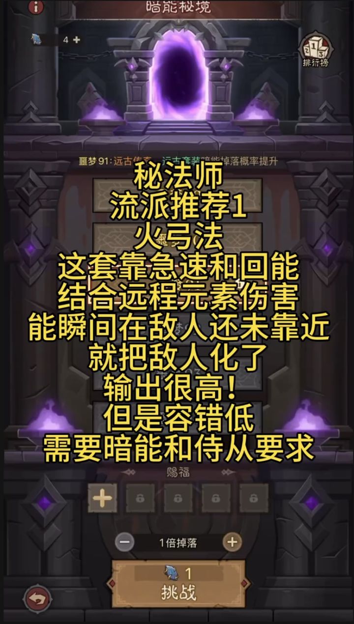 这套靠急速和回能结合远程元素伤害,能瞬间在敌人还未靠近就把敌人化了,输出很高!但是容错低,需要暗能和侍从要求。