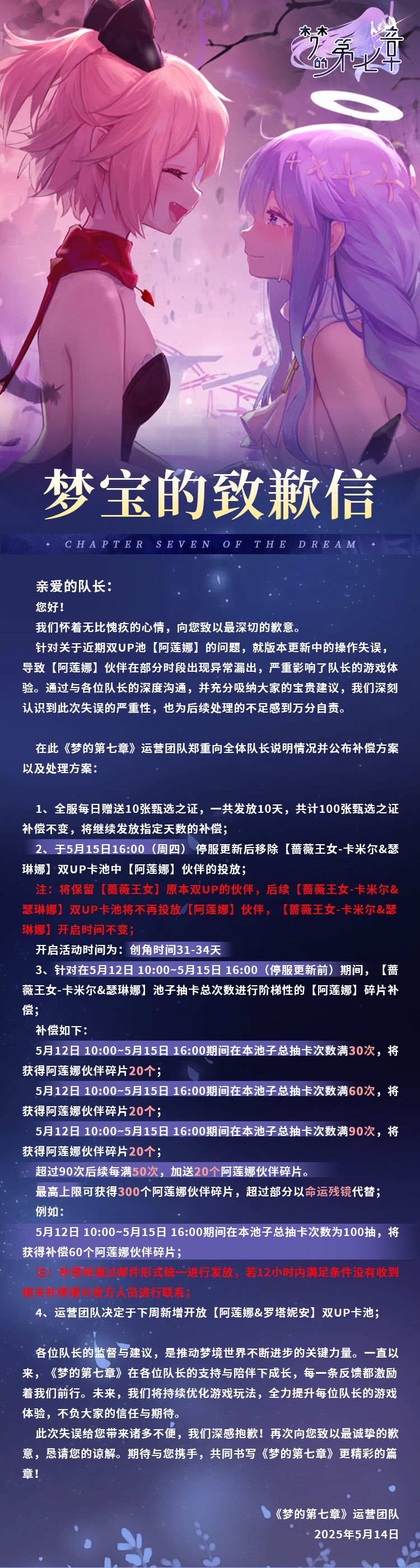 梦宝的致歉信
