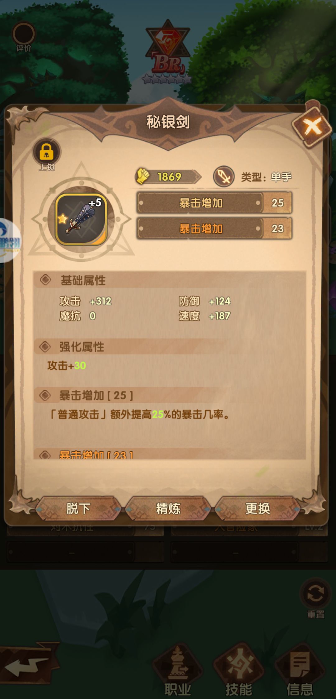 如图,进战斗以后暴击增加还是48,没有额外多武器的词条。而且这都很久了……