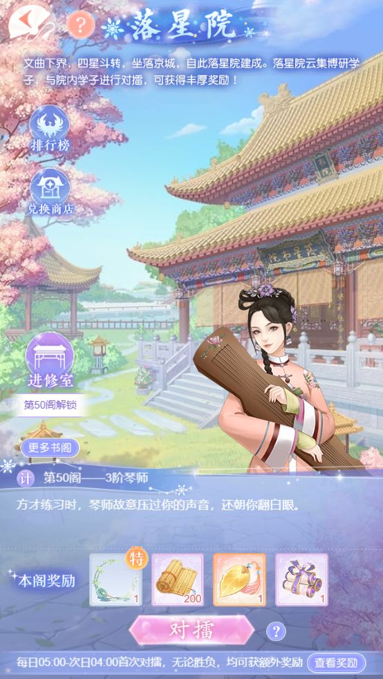小主在落星院对擂、在进修室修习,都可以获得【典藏书卷】。可以在兑换商店兑换对应奖励。