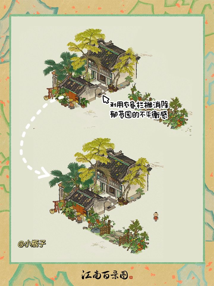 之前拿到郁苍园的时候总是感觉这个建筑缺少了一块,总想找一个东西把它补齐,农家栏栅出了之后发现非常适合呀,就利用这个搭建了一个小院子,并且把布局思路分享给大家~