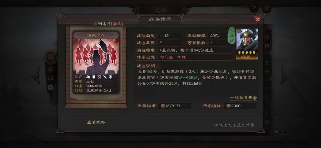 游戏中除了可以在准备阶段为武将提供增伤状态,战斗回合也是可以的。今天为大家介绍的是兼具伤害和兵刃增伤双重功效的战法——诱敌深入。