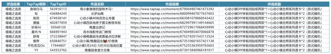 【喵喵图文奖】活动结束后,喵喵将会根据攻略发帖数量、质量、互动量等维度综合评选出10份图文稿件(非视频类),作者可获得心动小镇百变喵喵盲盒*1(单抽 款式随机)+心动小镇合照系列透卡*4(款式随机)。