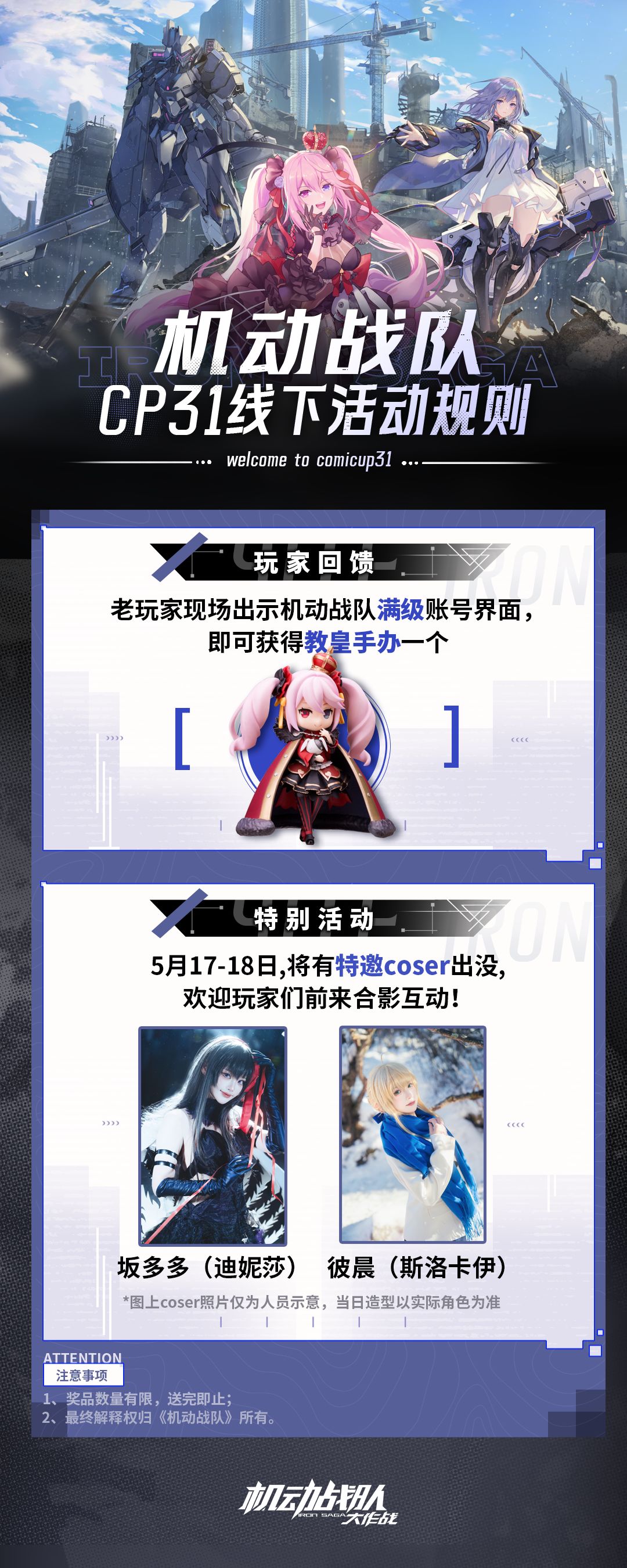 ✨️参与现场活动,领取限量好礼【公国定制袋】,满级账号玩家更能获得【教皇手办】等礼品!数量有限,先到先得~更有丰富的官方周边产品现场贩售喔!