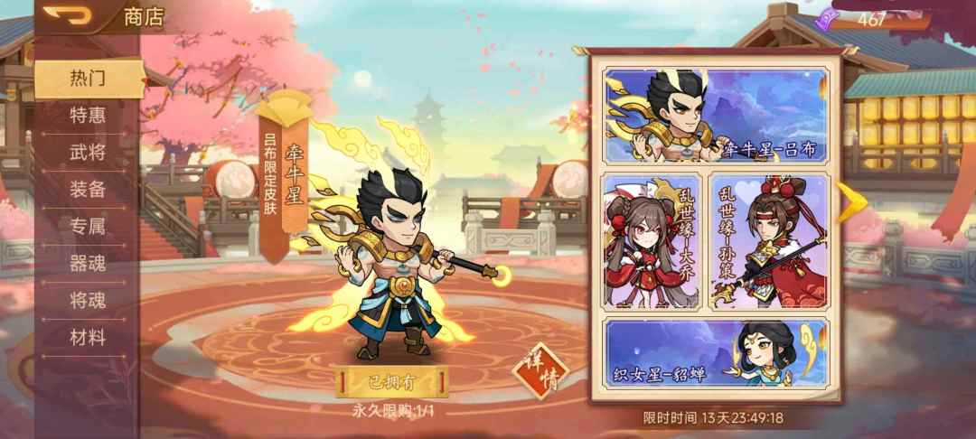 活动内容:吕布,貂蝉,孙策,大乔限定皮肤商城热卖!