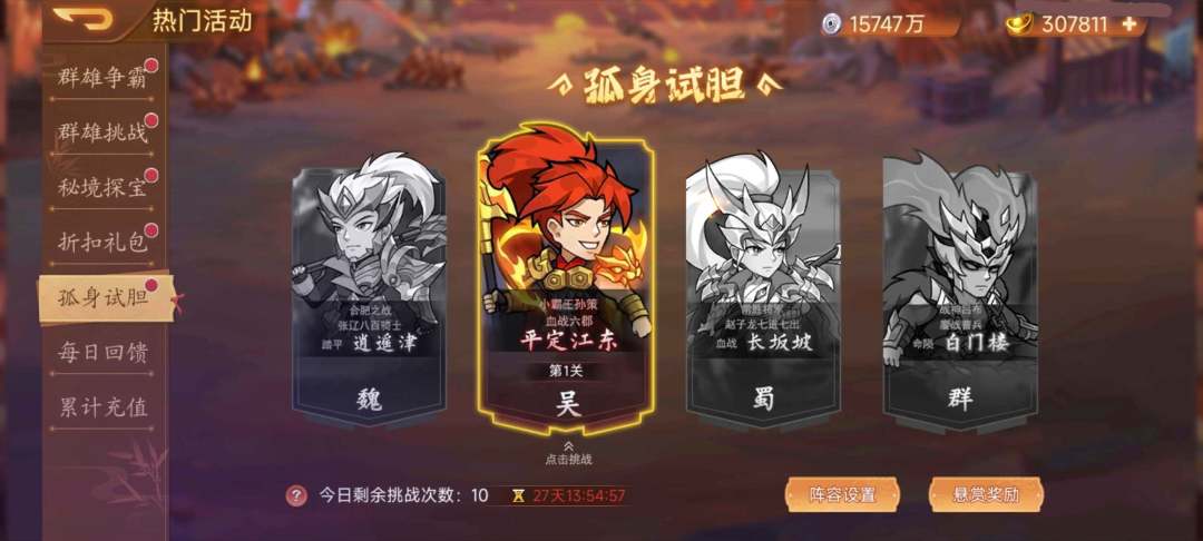 活动内容:活动期间开启限时副本挑战,活动副本共有7层,每层4关,每次过关可获得奖励。每日解锁一层可进行挑战。