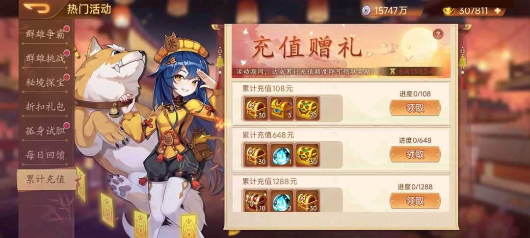 活动内容:活动期间,累计达成充值额度即可领取奖励!