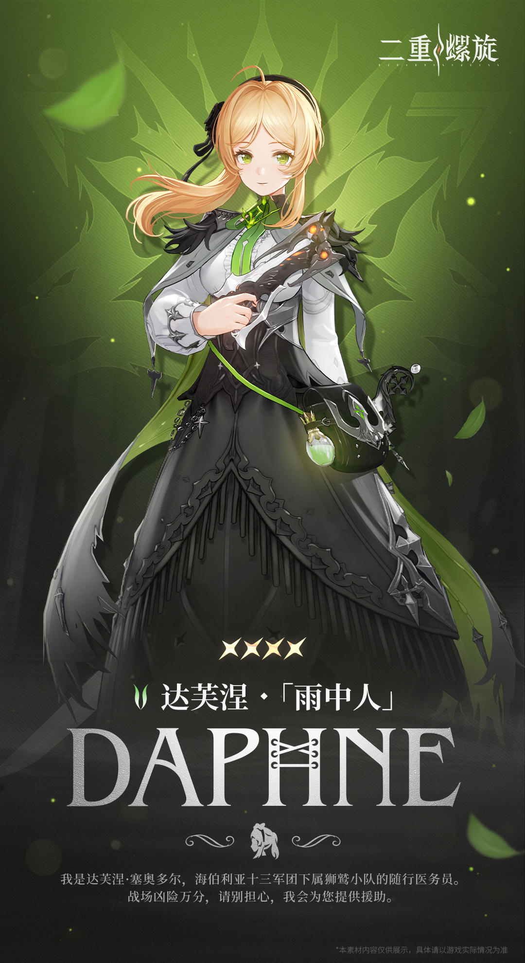 放弃在皇家炼金院深造的机会,转而成为一名再普通不过的随军医务人员,达芙涅的初衷从未改变,她的理想依旧长青:“救下更多的人,践行生命应有的尊严”。