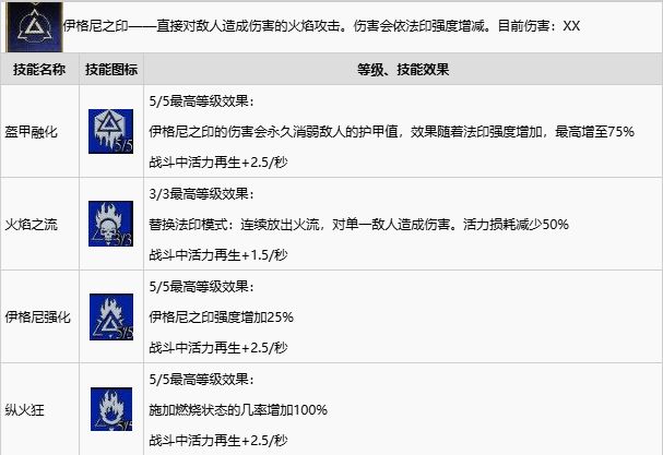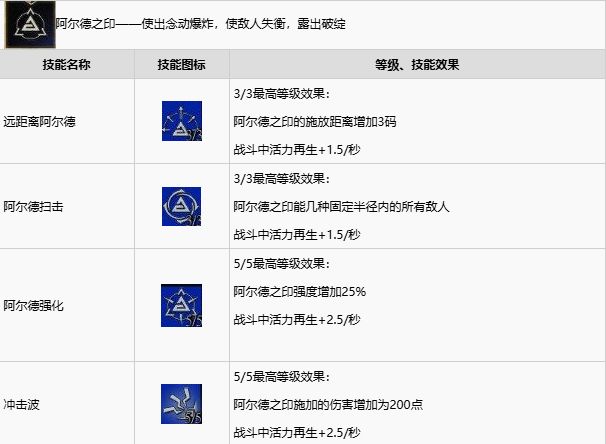 法印技能在法印技能中和战斗技能是一样的,总共会有5大技能,其中包括4个树状形式的分支技能,并且分支技能同时可以升到2~5级不等,每个级别增益效果也不同,下面就放出法印的每一个分支技能属性效果清单,喜欢近战的小伙伴也可以点击巫师3剑术流技能介绍剑术系技能大全。