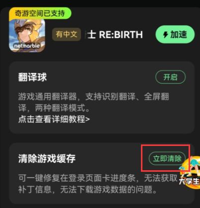 第四步:【奇游空间】内游戏下载好后,点击加速进入游戏