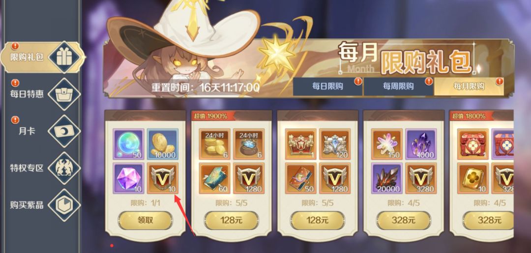 就是玩家如何在游戏中获得VIP经验,很简单,也很方便:点击 游戏右上角商城-限购礼包-每日限购、每周限购、每月限购,均可领1个免费礼包。10点VIP经验轻松到手!