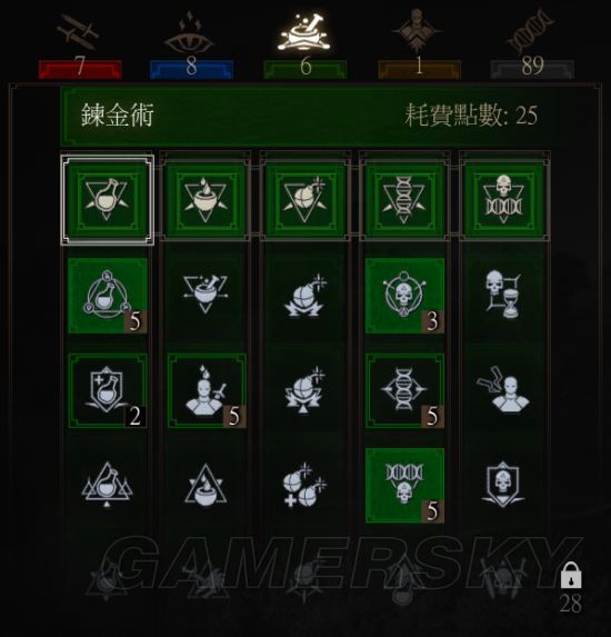 4.acquired tolerance(获取耐性,3点):每知道一个炼金公式增加1点最大毒性值。最后公式收集全了能堆到240+,也就是只花3点技能就能获得140+的毒性上限,比那个“耐性提高”简直强太多了。