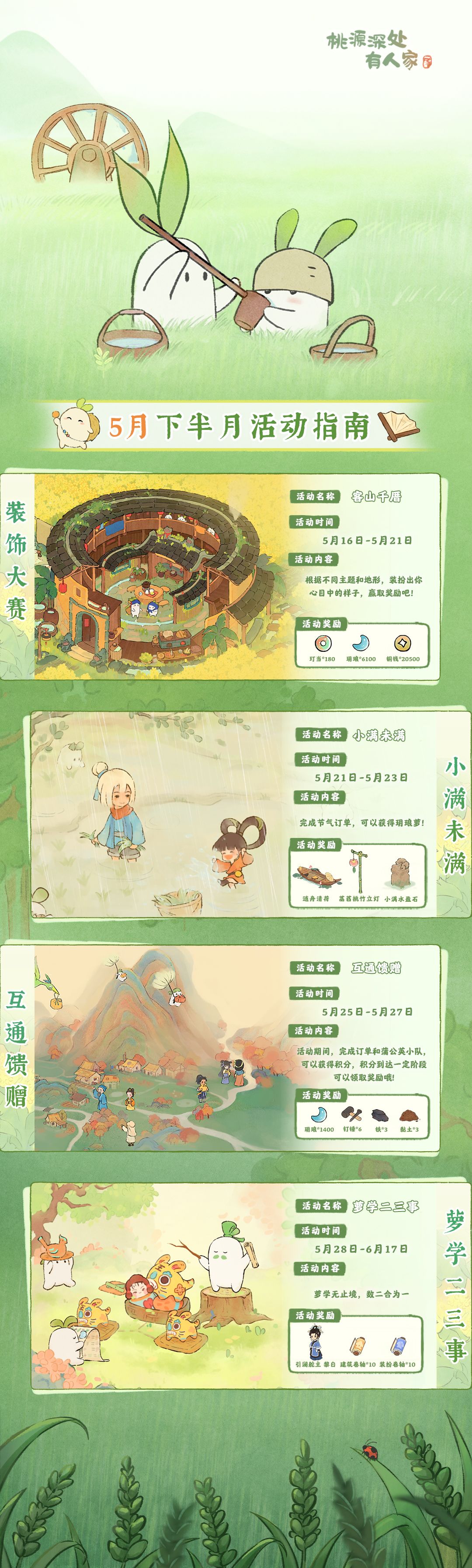 为了防止山民错过时间,小萝卜特意制作了五月下半月活动日历,有需要的山民可以收藏日历哟!