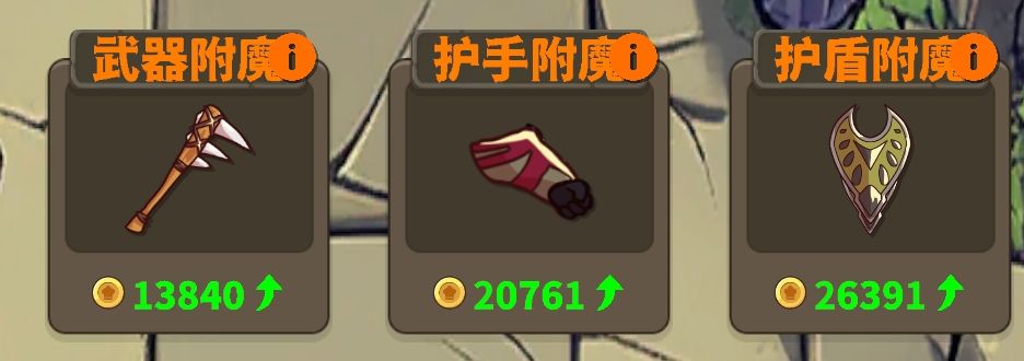 在《迷宫与美食》中,主角所需要的防御和增益BUFF的获取,首先要激活附魔三件套,也就是附魔武器、护手、护盾。