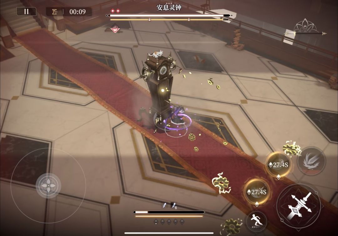 铂鸢没有携带金枝,使用1技能消耗完精力的情况,注意BOSS血条下方的火异常积累条