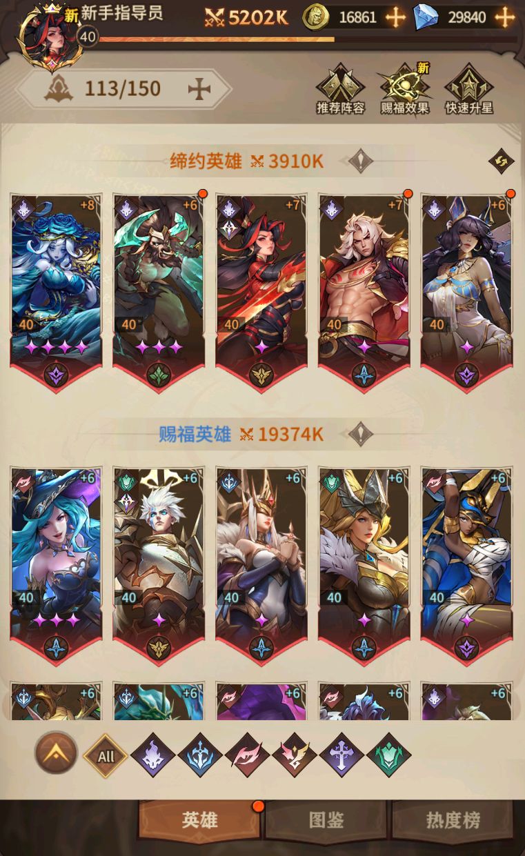 2、升星补完图鉴提升战力,今天有足够的狗粮,把之前获得的红色传说三系英雄升一下星,如下图。提升一波战力。
