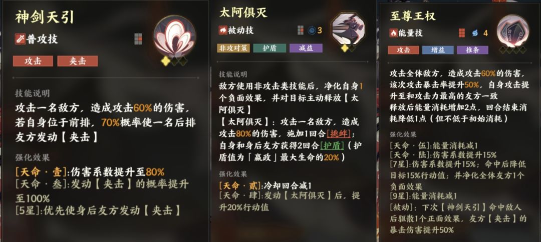 然后是嬴政,5星+天三就够用。后续的加点是针对pvp的,pve不用管。