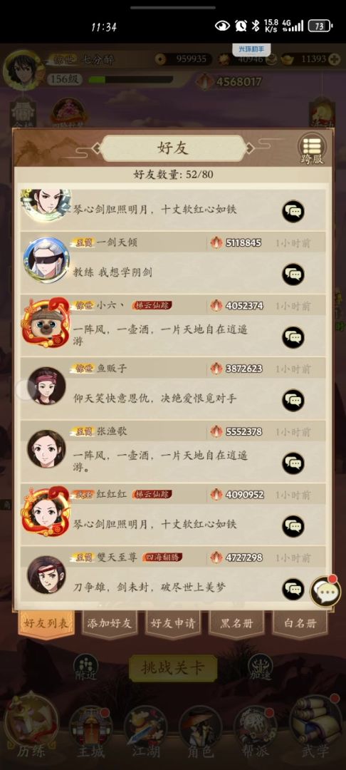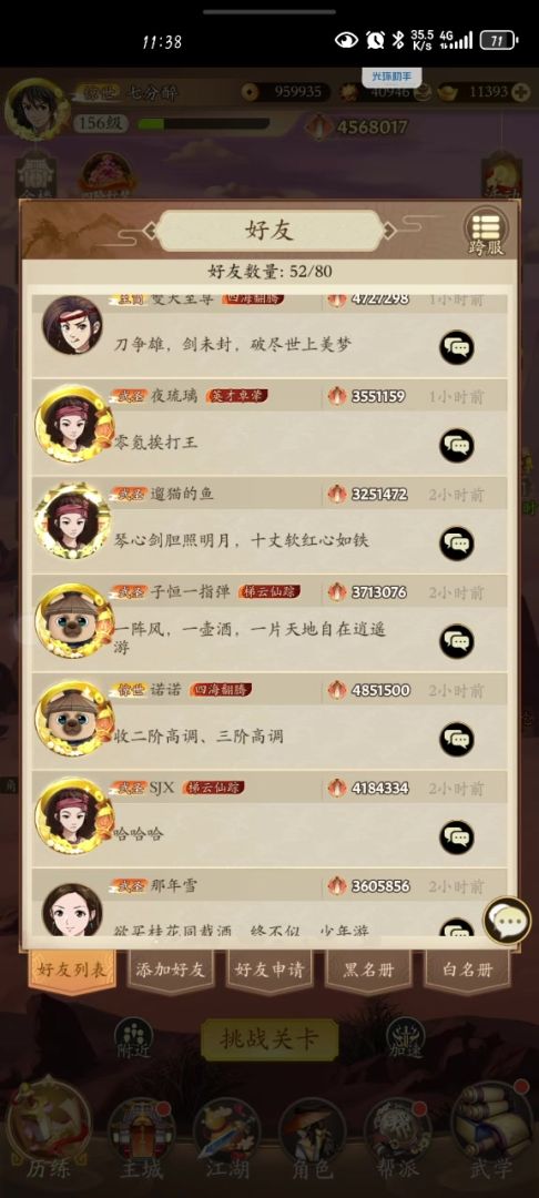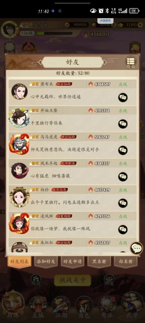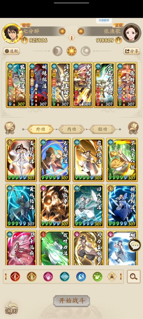 前言:楼主的装备呢不敢说多豪华。简单介绍一下一阶二阶装备奇门精通10个,剩下的:不是八荒就是轻功。三阶装备目前比较破。注意敲重点楼主有千里。