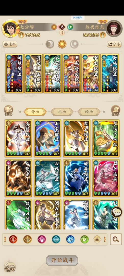 整体外功的配招,其实变化没什么好说的,一般到五虎也就解决战斗了,奉先英凤纯粹瞎上的没有过多的考虑。