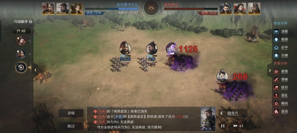 特别鸣谢游戏ID名为“杀尽黄巾小儿”的玩家朋友,给本文提供了宝贵的创作素材。还别说,他真是说到做到,用皇甫嵩、朱儁和袁术摆出箕形阵,把对面的黄巾部队给打得落花流水。18000多的残兵状态如何逆转对面曹操、吕布和曹纯的满编30000兵力,且看我下文详情分解!