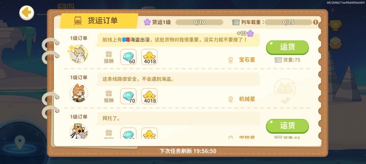感觉还是比较合理的,之前觉得任务钻石少,是因为它只是指引任务,后期几乎就没有了,前期主要靠开成就获得的钻石和帮助乘车人员的抽卡券碎片(一天六个,五个合成一张)来获得角色度过前期,等开了雪星完成任务会开物流仓库,都做完一天至少会有200钻,这样一天保底都会有一抽,对于一个小游戏来说还算不错