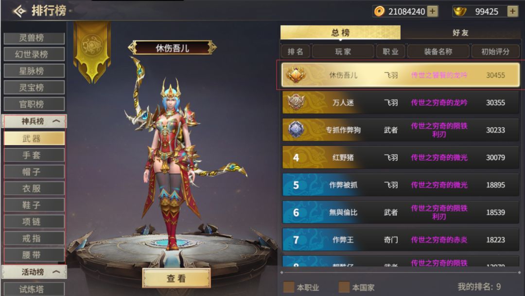 获奖规则:根据玩家打造的装备品质、属性等综合评分进行神兵榜总榜排名(武器、手套、帽子、衣服、鞋子、项链、戒指、腰带)每个装备品类的第一名获得奖励。