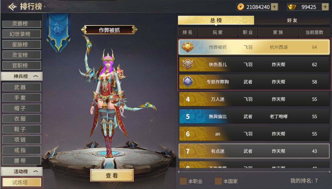排名规则:根据玩家在游戏内的试练塔层数进行排名(通过游戏内排行榜-活动榜-试练塔查看)