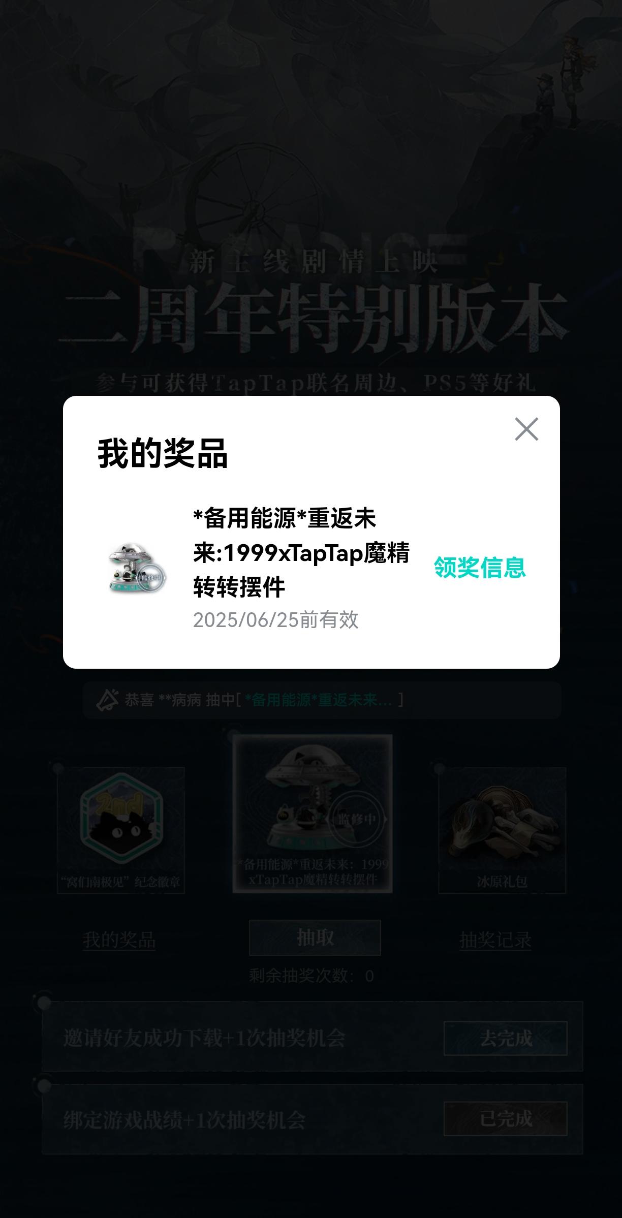 进去一抽也中了一个,今天还蛮好运的