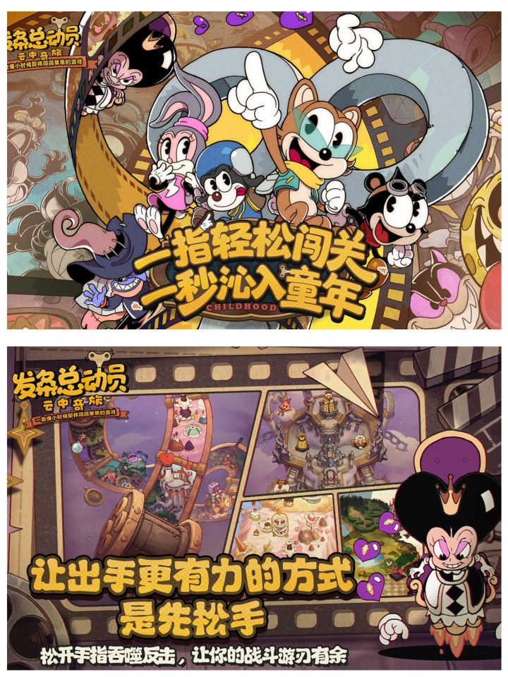 ✨游戏采用手绘复古卡通风格,画面如经典动画,色彩鲜艳⭐️、线条流畅,搭配爵士乐🎼,营造出独特的怀旧氛围。