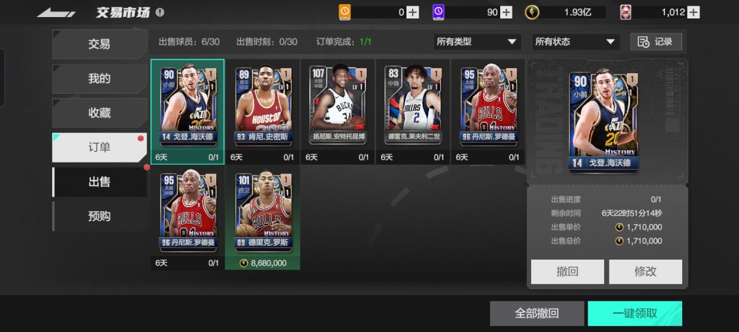 周所周知历史包活动一出来,历史卡肯定是溢价要高位抛掉的,那么如何第一时间抛掉,让自己利益最大化,在高位下车呢?其实就是卡偶数点价格,价格拉到最低就好了,系统是每过2小时会有一次价格调动,比如10点-12点-2点这样。一般都是整点过个3-4分钟就可以改价了,这个时候你第一时间改最低价上,官方系统是会优先回收掉你的卡的,我这个都是知道的晚了点,不过也是昨天在高位抛了罗斯,罗德曼了,下次有氪历史包的抛球员也可以用到这个方法哈,觉得有用的麻烦点个赞或者收藏一下哈,谢谢!