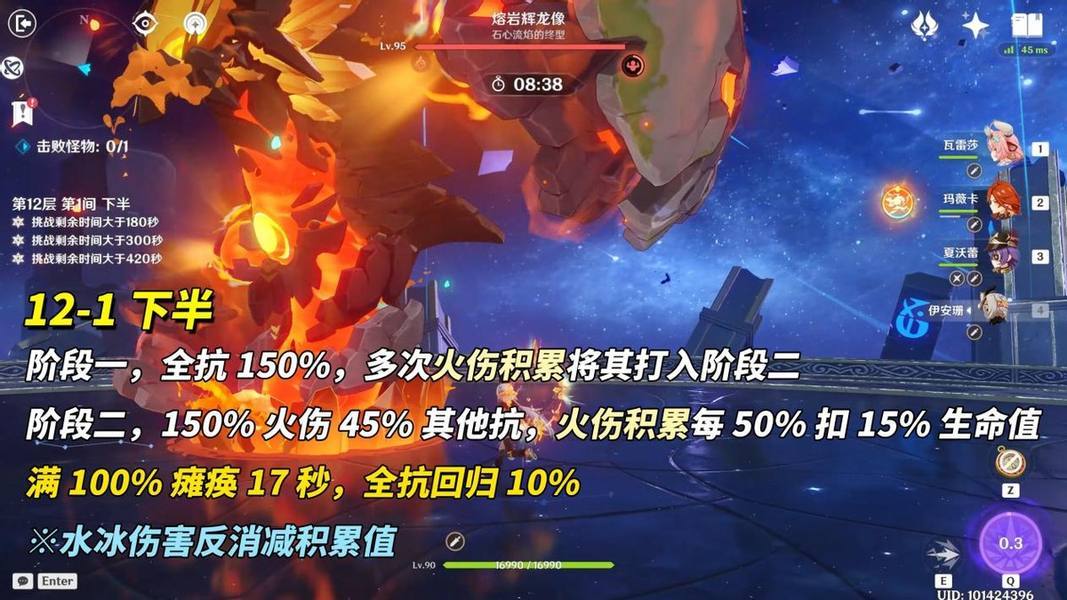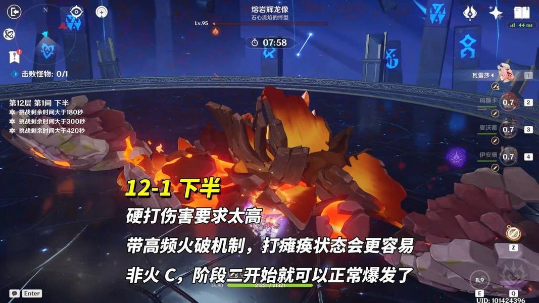 【12-1下】460万血量的熔岩辉龙像,此BOSS建议走机制破除!共分2个阶段: