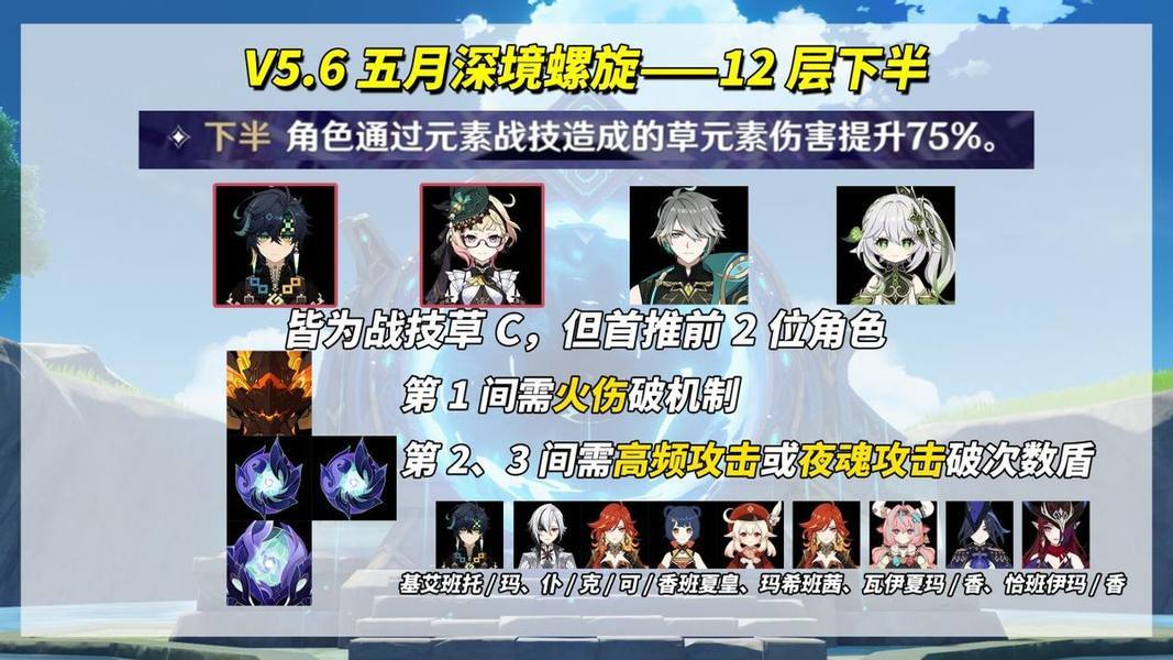 以上就是本期5.6版本5月深境螺旋攻略,上半基本属于送分题抢时间,核心难点集中于下半场。也欢迎已经通关满星的小伙伴,在评论区分享你的阵容,帮助更多旅行者拿满奖励~